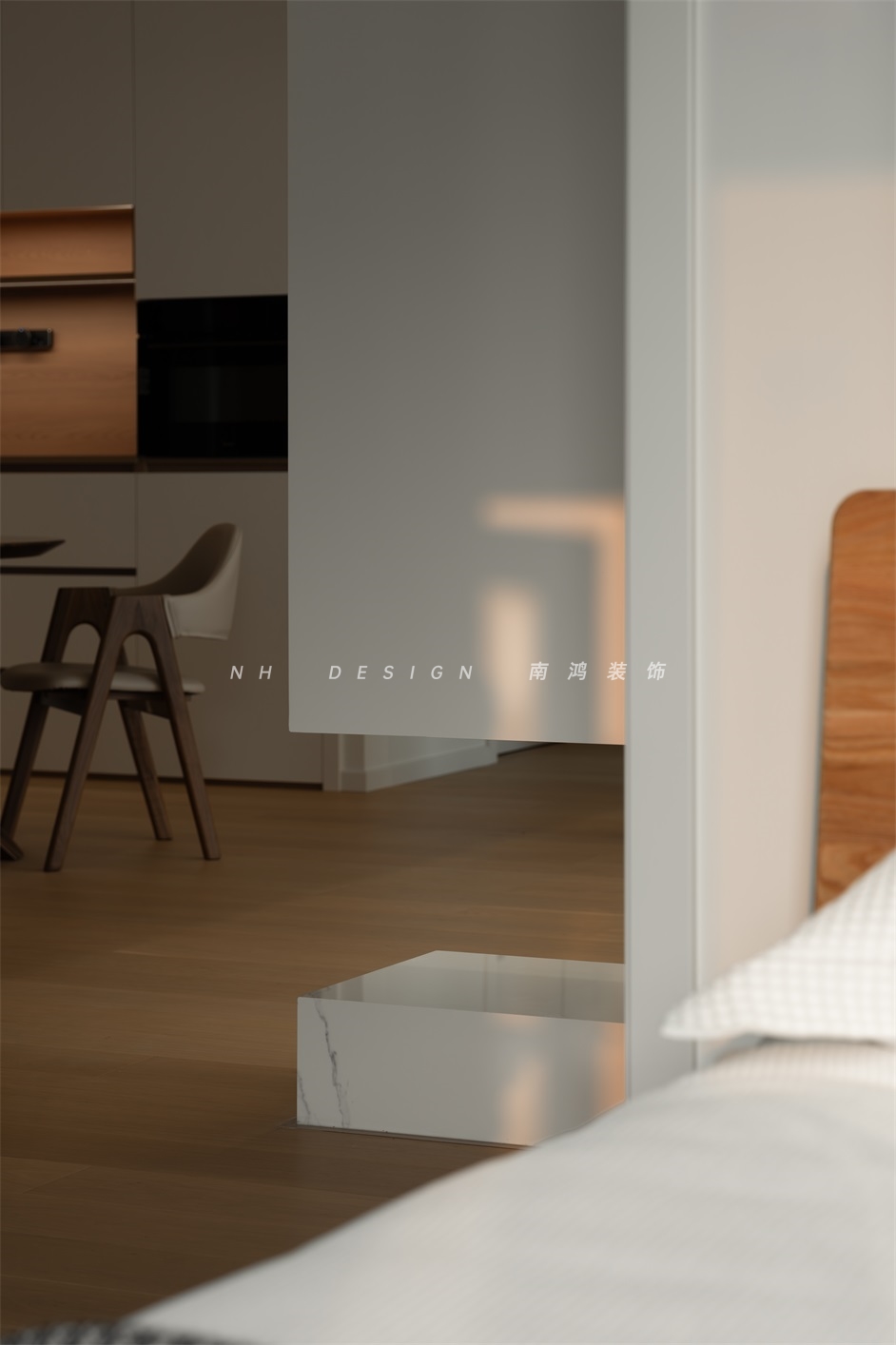 客餐之间串联起视线通畅的格局,木白色系调配出和谐感,加之柔和光感的烘托,展现出恰到好处的空间美学。
