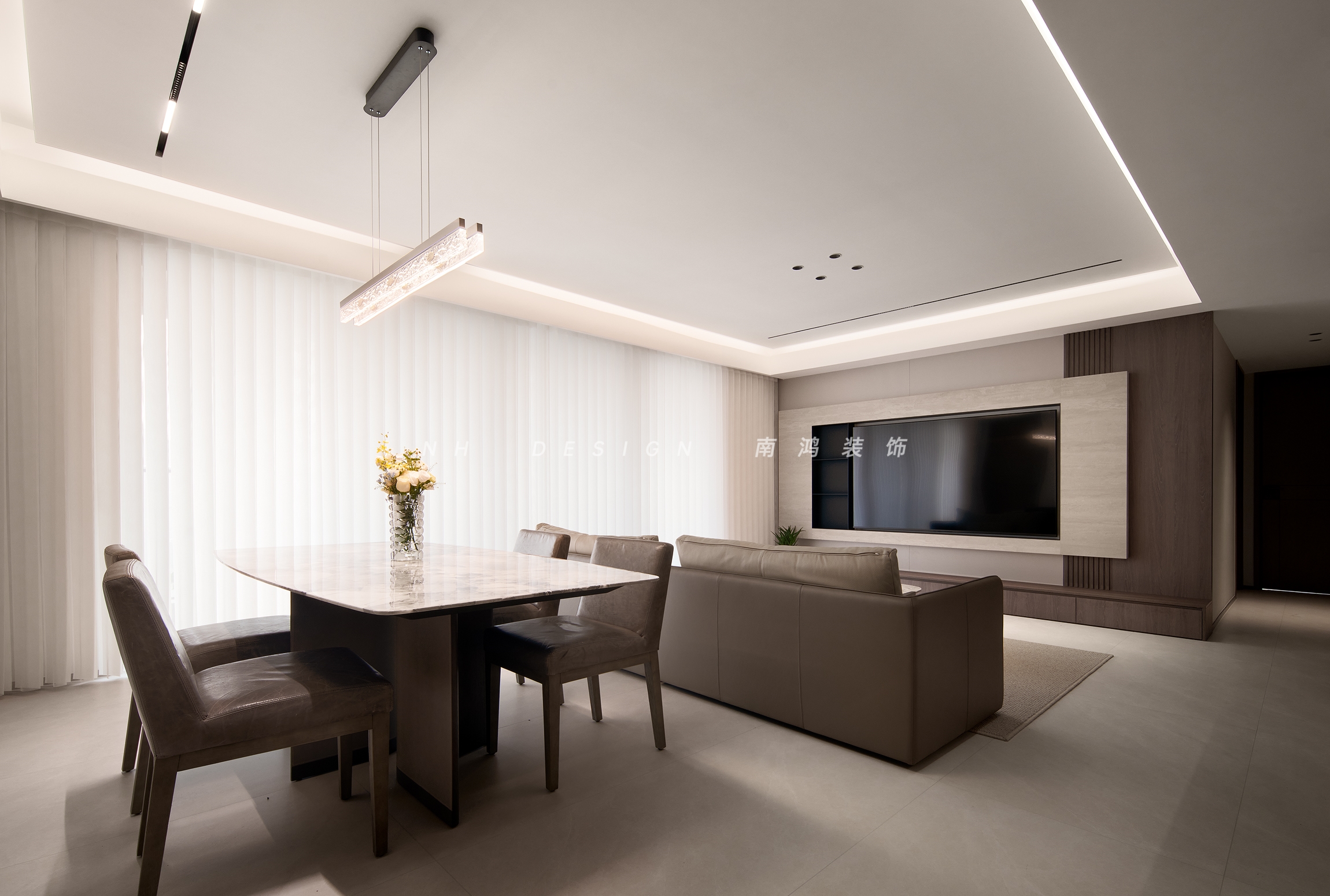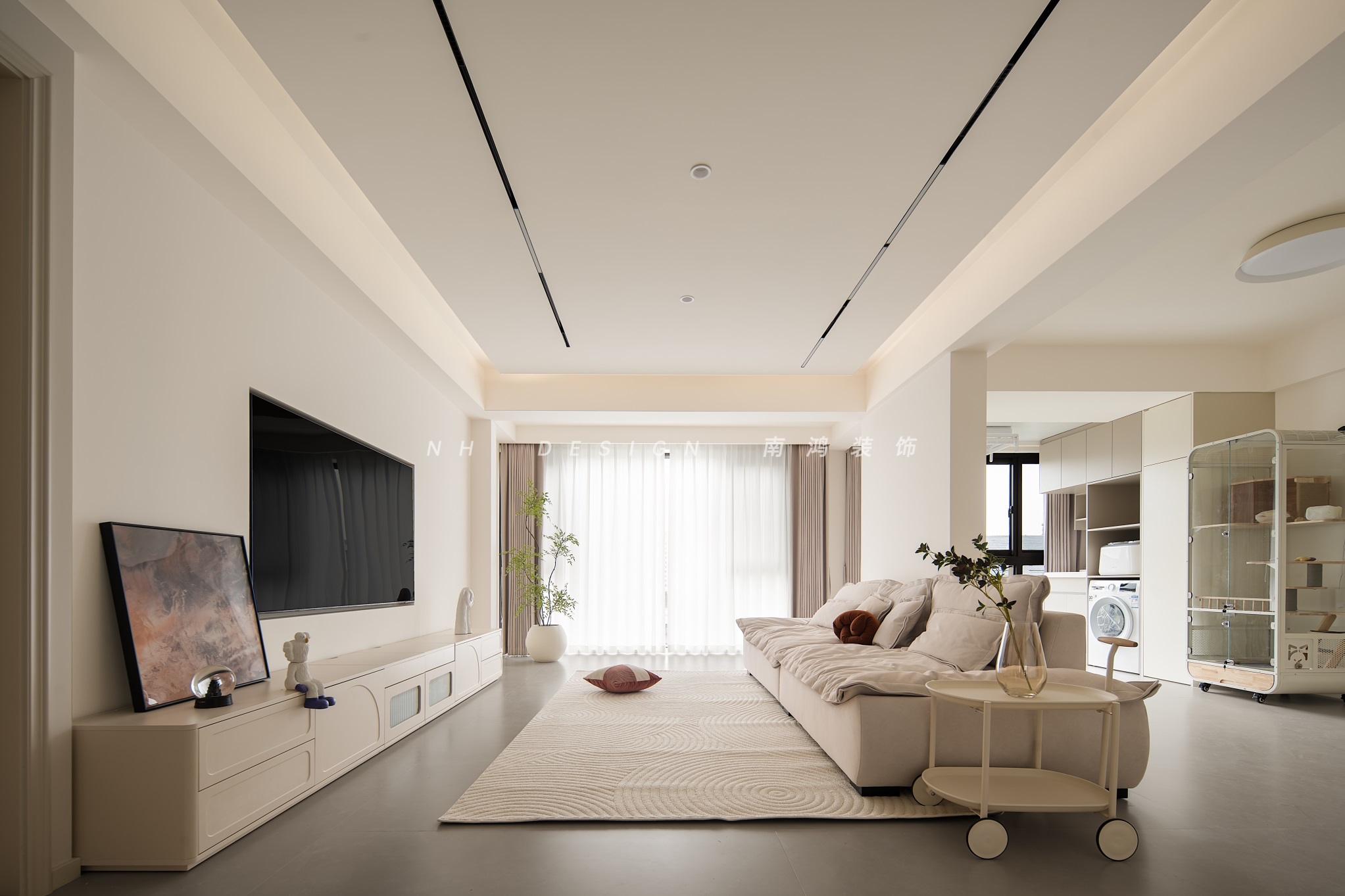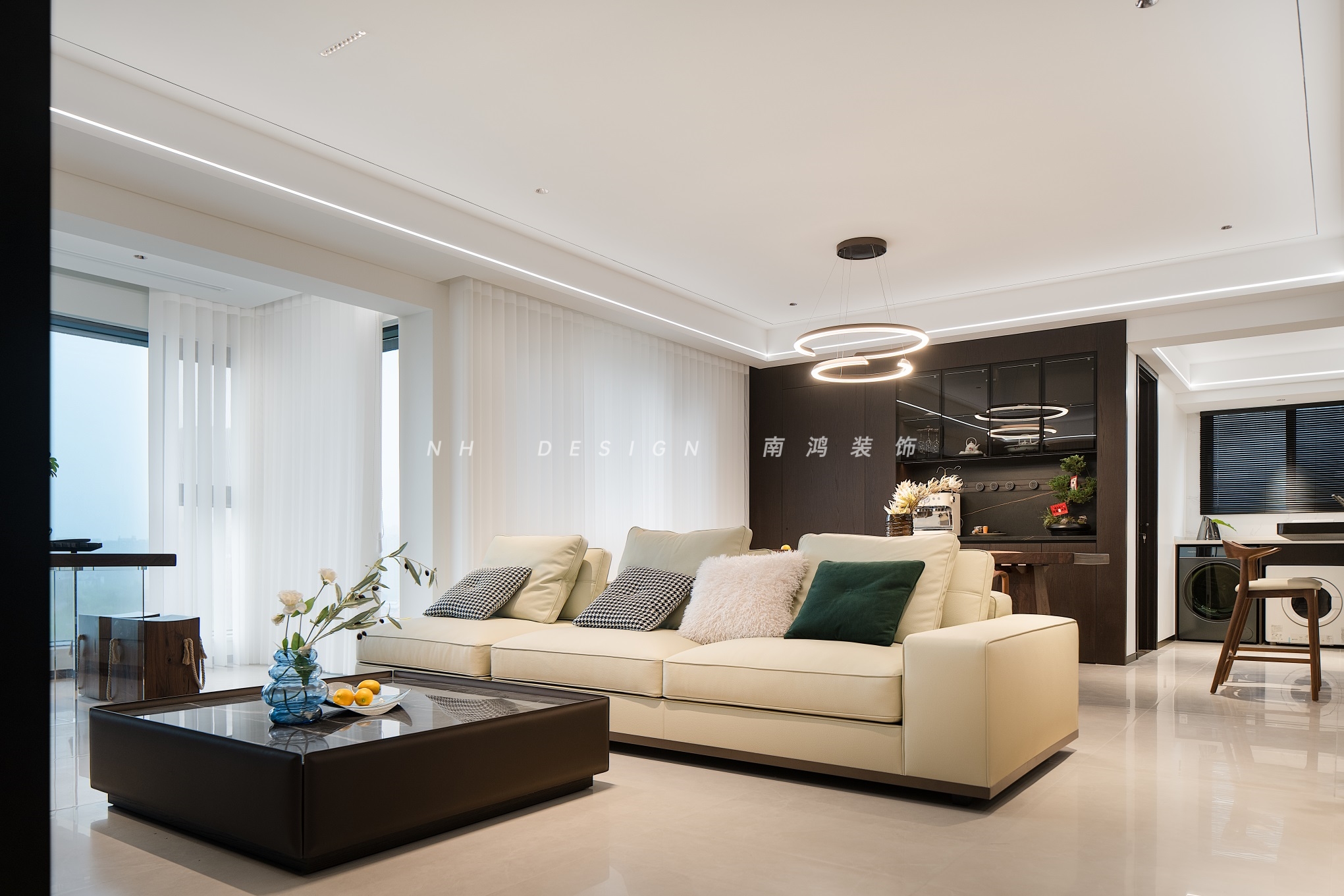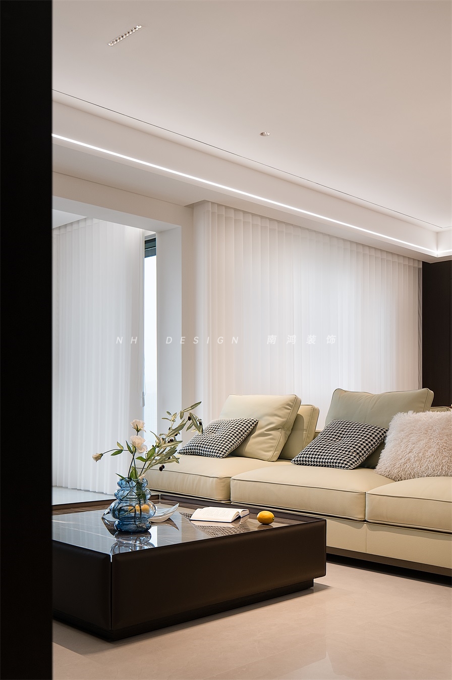 极简的线条勾勒着现代美学,低饱和度色彩组合与利落几何形态相映,在开放空间中铺陈出宁谧而包容的生活氛围。