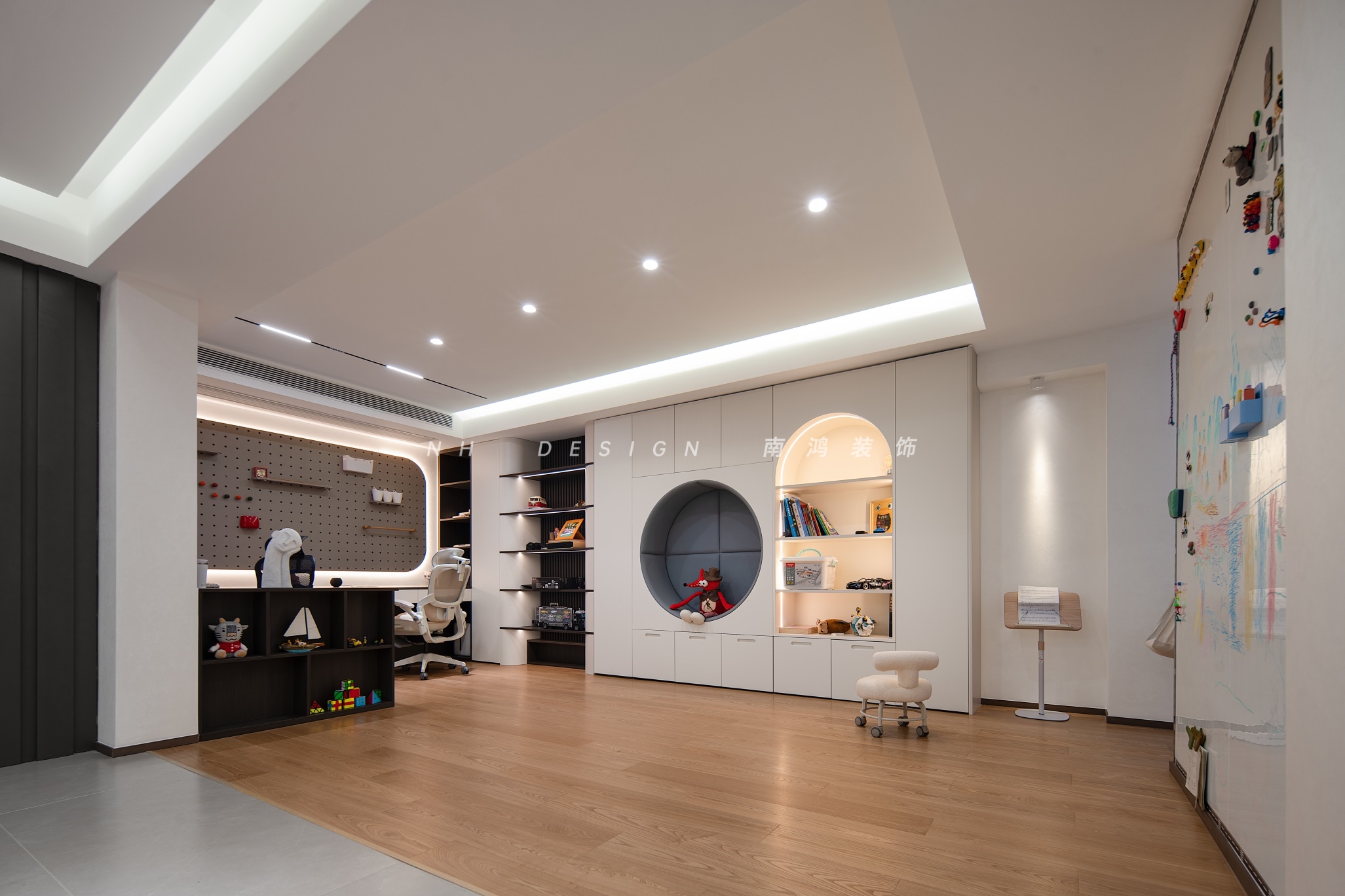 开放的格局,赋予了空间更多可能性。地下室特别打造亲子互动场域,并精细划分学习区、阅读区、玩乐区以及储物区,交互式的活动成长空间,维系了家人间的情感联结,又为个体保留了专属领域。